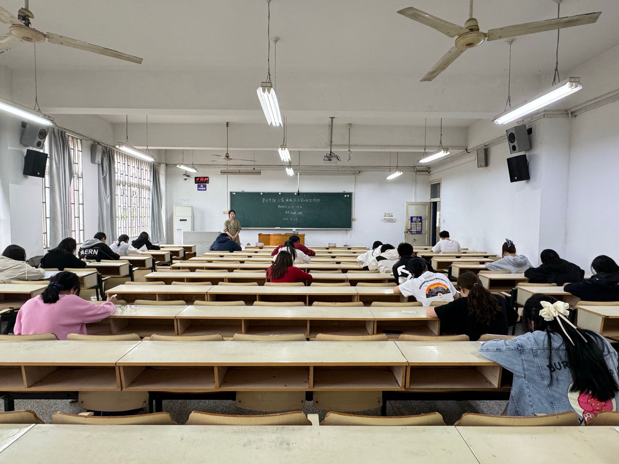 本网讯 为进一步深化学院入党积极分子对党的理论知识的理解和掌握,提升党员队伍的政治素养和党性修养,4月29日中午,资源与环境学院组织8个学生党支部共152名入党积极分子同步进行党的理论知识测试。监考人员由学生党支部书记担任。