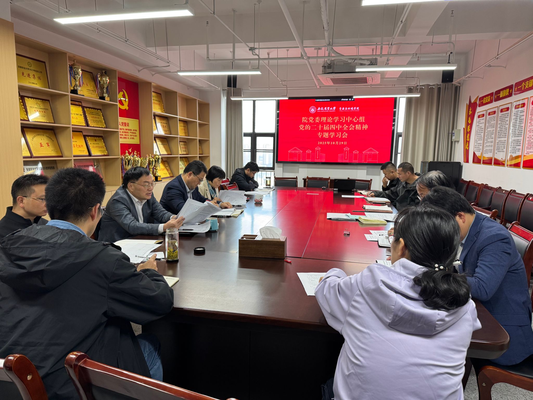 本网讯 10月29日,学院党委理论学习中心组专题学习党的二十届四中全会精神,学院领导班子、系部主任及党支部书记参加。