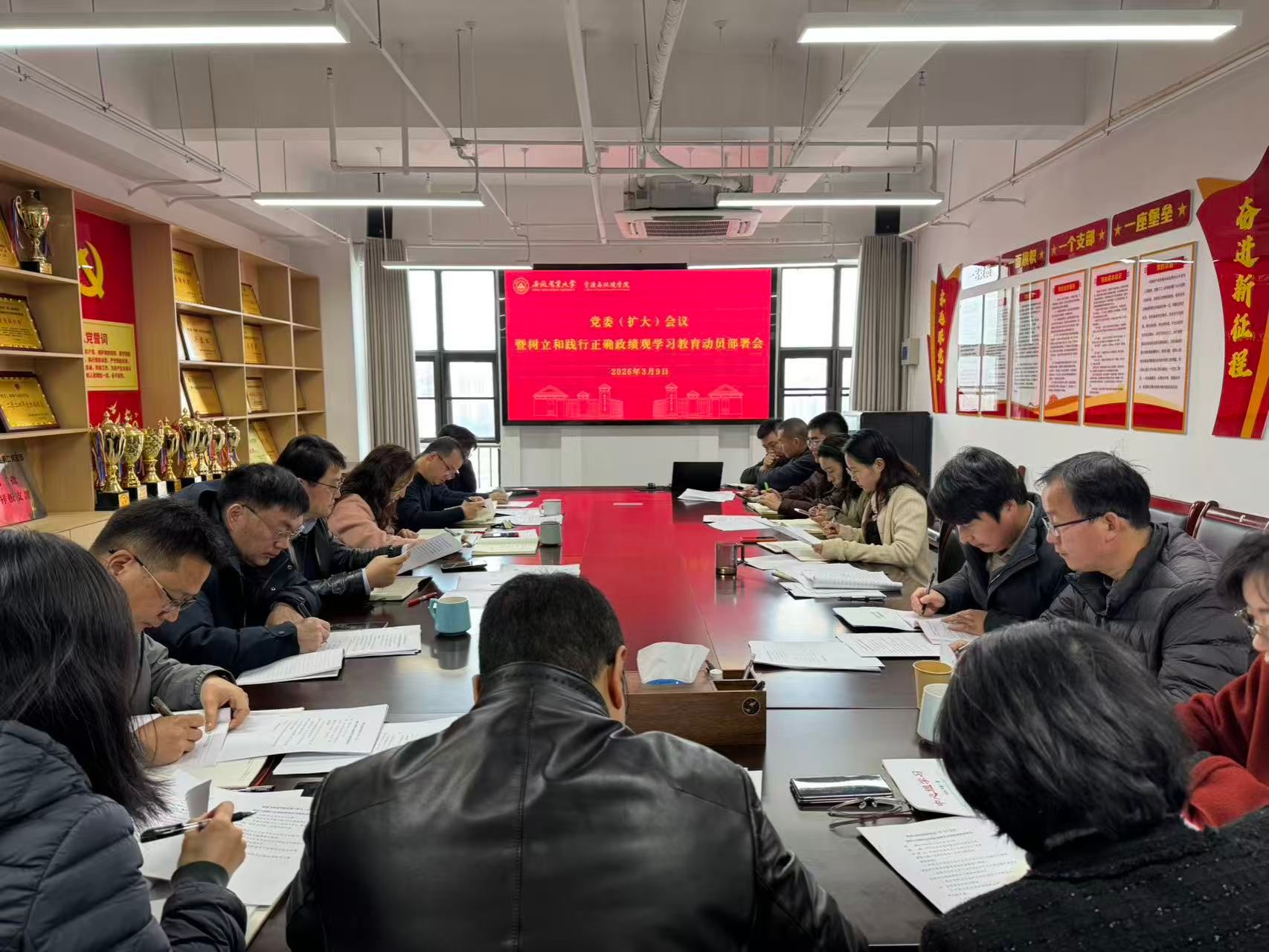 本网讯 3月9日上午,资源与环境学院召开党委会(扩大)会,动员部署树立和践行正确政绩观学习教育。学院党委副书记(主持工作)钟晨主持会议,学院党委委员、各党支部书记参加会议。