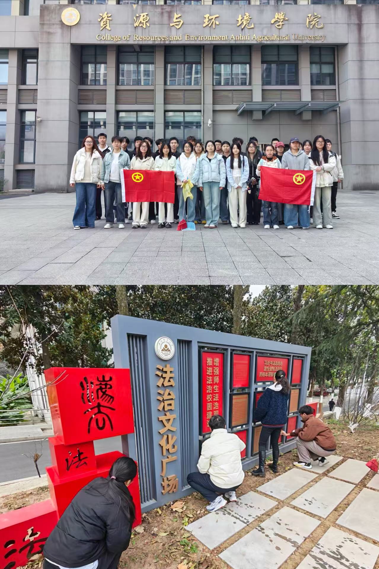 学院组织青年志愿者开展校园环境整治行动。志愿者们分别前往校内法治文化广场、中西部大楼对公共区域、卫生死角进行全面清扫,擦拭公共设施、清理杂物垃圾,以实际行动践行雷锋精神,展现了青年学子的责任与担当。