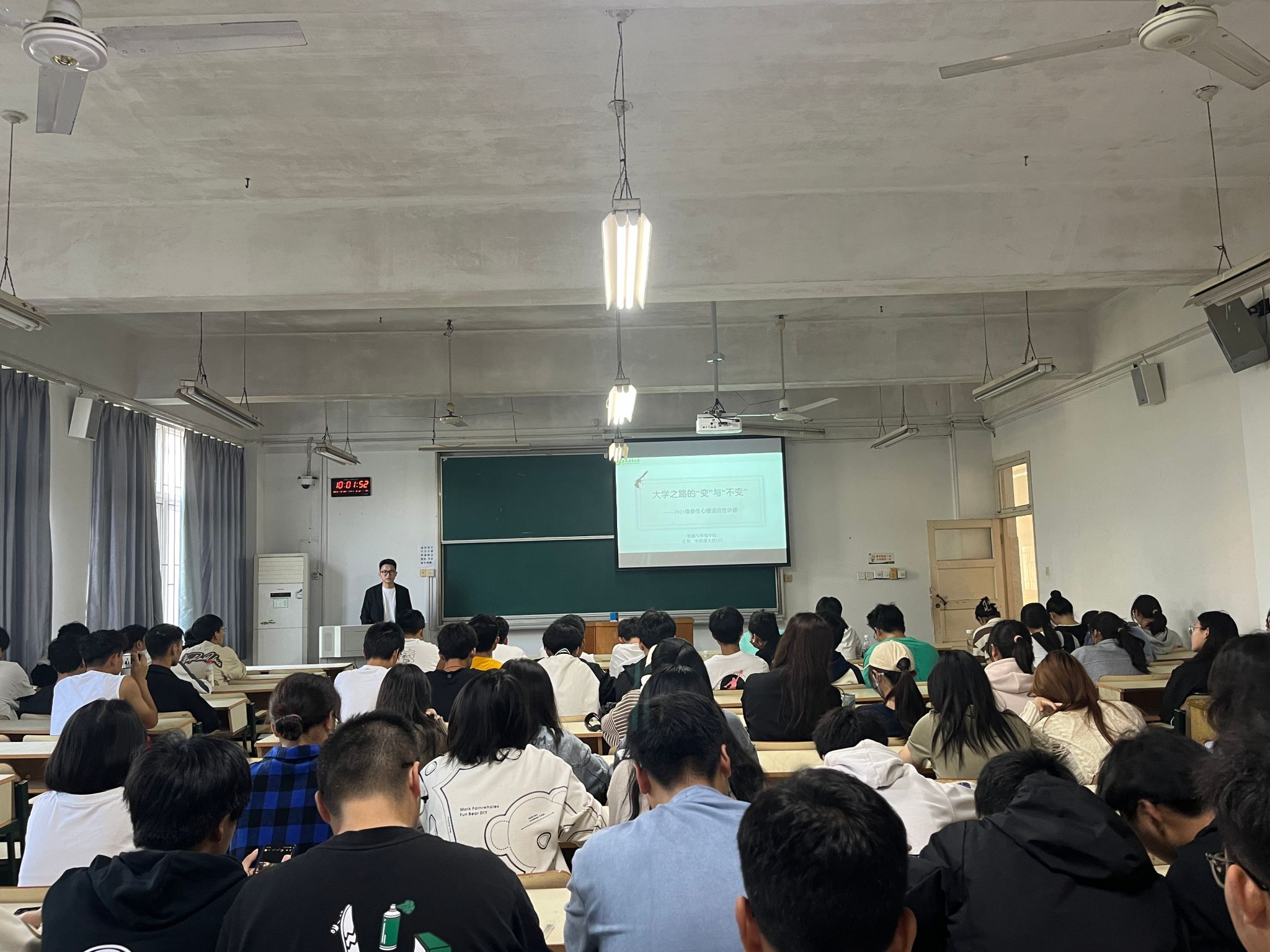 讲座主要围绕心理健康的相关概念、大学常见心理问题的表现,和心理调适方法三个方面依次展开。首先,通过强调心理健康的概念,引起学生对调整心态、积极适应的重视。其次,从环境、生活、学习、人际关系、角色转变、理想与现实落差等方面,举例说明了大学生常见的心理行为问题产生的原因。通过理论知识与案例的结合,深入浅出地引导学生重视心理健康,有意识地增强心理素质,针对性地提出了合理管理时间、设置目标、主动寻求社会支持等心理调适方法,帮助学生树立阳光心态、悦纳自己,尽快融入大学生活。最后,主讲老师向学生介绍了大学生心理文化艺术节等系列活动、学校心理咨询中心的地址、预约热线等专业的心理求助渠道,鼓励学生有需要主动向心理中心求助,并积极参与心理健康教育各项互动,丰富大学生活。