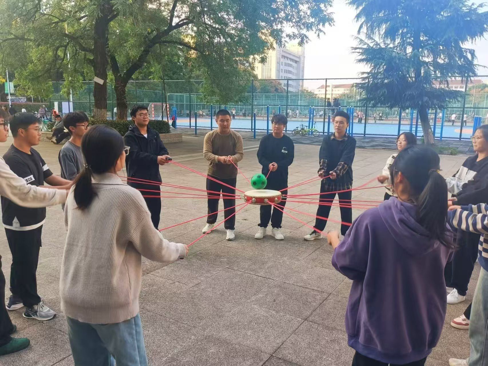 现场开展了一系列活动和团队合作游戏,如“交换祝福”、“成长小鸡”等。同学们不仅放下了担心和焦虑,还相互结交,发现了彼此的优点,共构了欢乐且积极的团队氛围。在“不倒翁”的活动中,团队成员需要紧密围成一圈,其中一人双手抱胸进入圆圈中心,如同不倒翁一样随着其他成员的轻推倒向一边,将自己完全交给队友,这个过程当中考验了团队成员间的信任度。通过本次心理健康团辅活动,有效加强了同学间的相互沟通、相互交流。学生不仅释放了压力,还通过互动游戏增进了彼此间的了解和友谊。