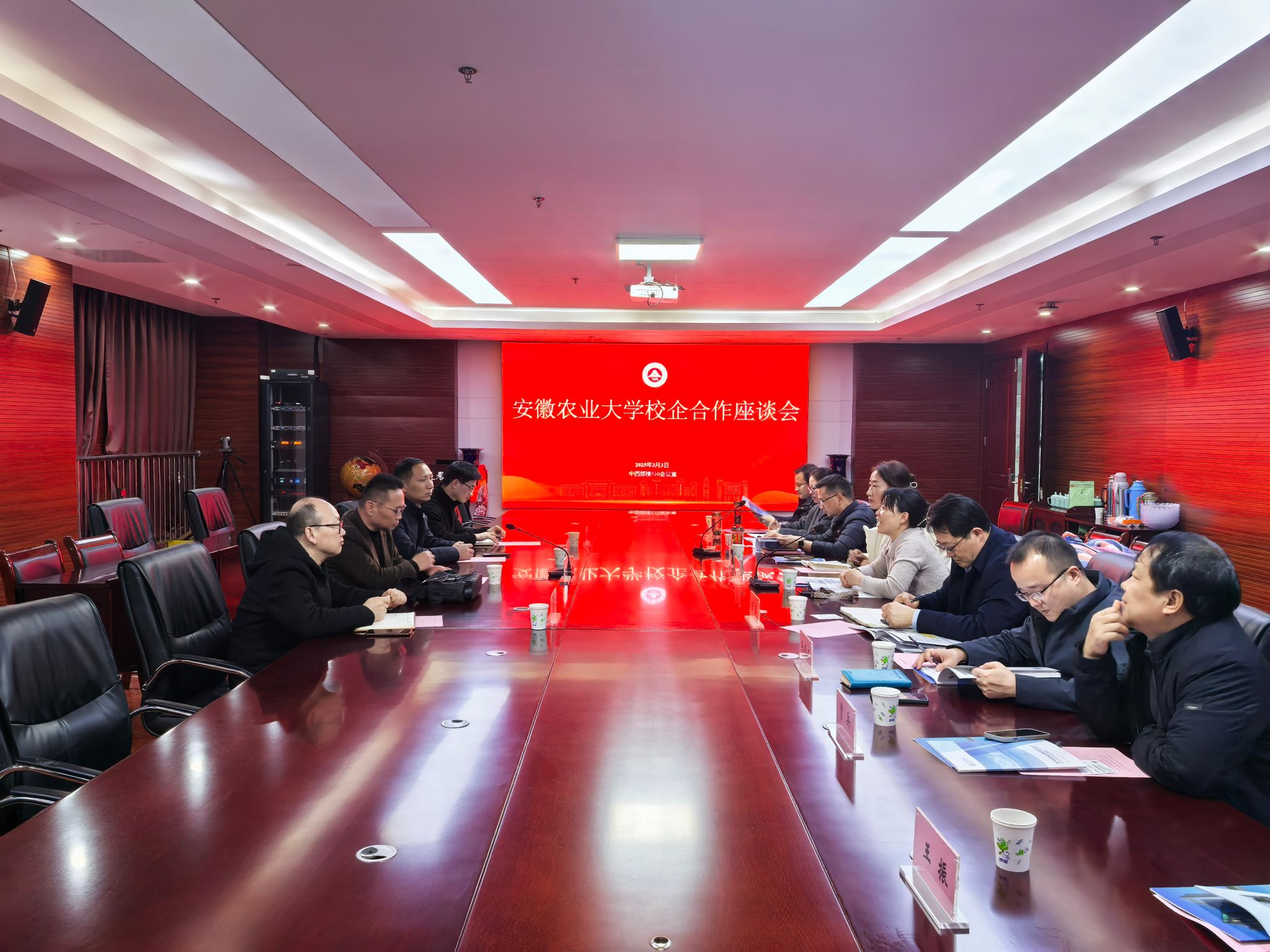 本网讯 3月5日,同兴环保科技股份有限公司董事长、安农大96届校友朱宁率队来安徽农业大学资源与环境学院进行校企合作交流。学院党委书记王琼、院长张震及部分学科负责人、教师代表出席座谈会,校友会办公室副主任汪娜娜、园艺学院贾兵教授参加交流。