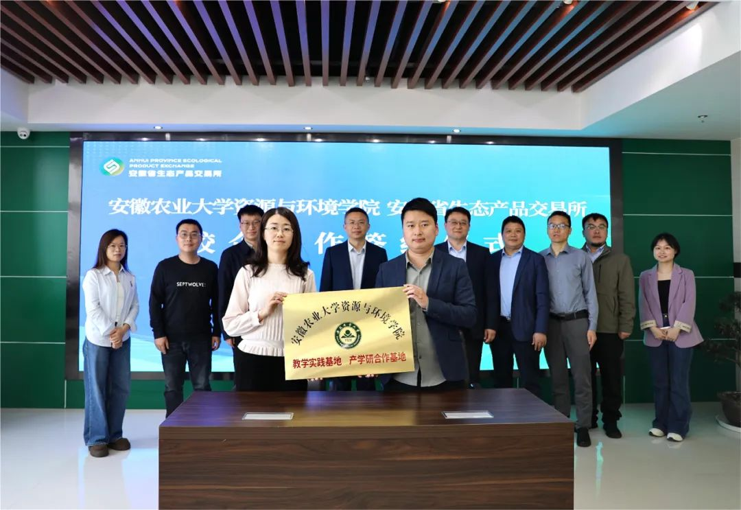 本网讯 4月9日,安徽农业大学资源与环境学院院长张震率队赴安徽省生态产品交易所开展“访企拓岗促就业”专项行动。双方正式签署合作协议,共建“教学实践基地”与“产学研合作基地”,并举行授牌仪式。