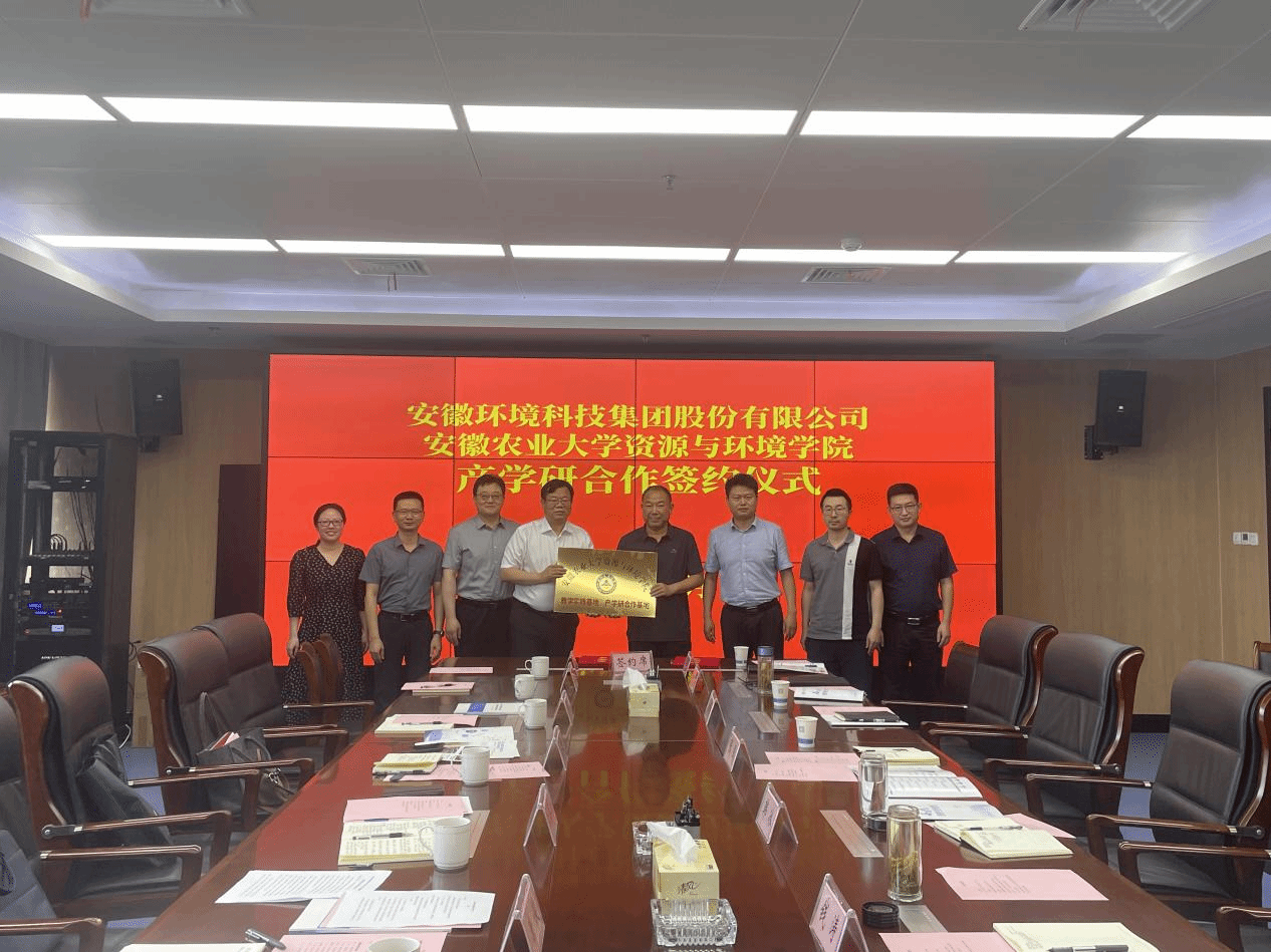 随后,江海洋一行赴安徽环境科技集团股份有限公司考察交流。公司党委副书记韩冰热情接待并举行座谈。双方介绍了各自事业发展概况,重点围绕学生实践教学、产学研合作、就业实习等议题交换意见。江海洋强调,深化校企合作意义重大,应充分发挥双方优势,加强产学研用全面协同,推动优势互补与产教深度融合。会上,双方举行了产学研合作基地签约及授牌仪式。
