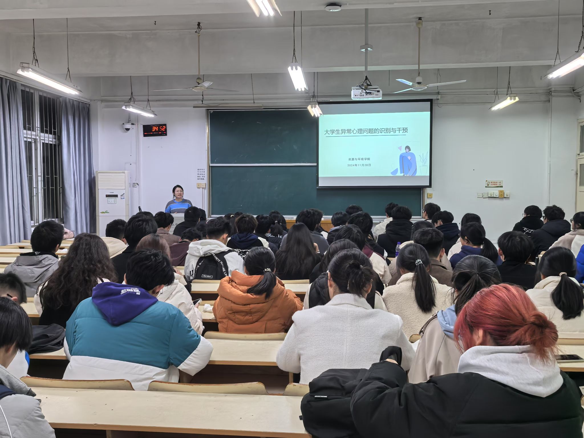 本网讯 11月28日晚,资源与环境学院在勤学楼102教室举行学生心理骨干专题培训,学院心理健康站负责人、2024级心理委员和宿舍心理信息员等100余人参加。