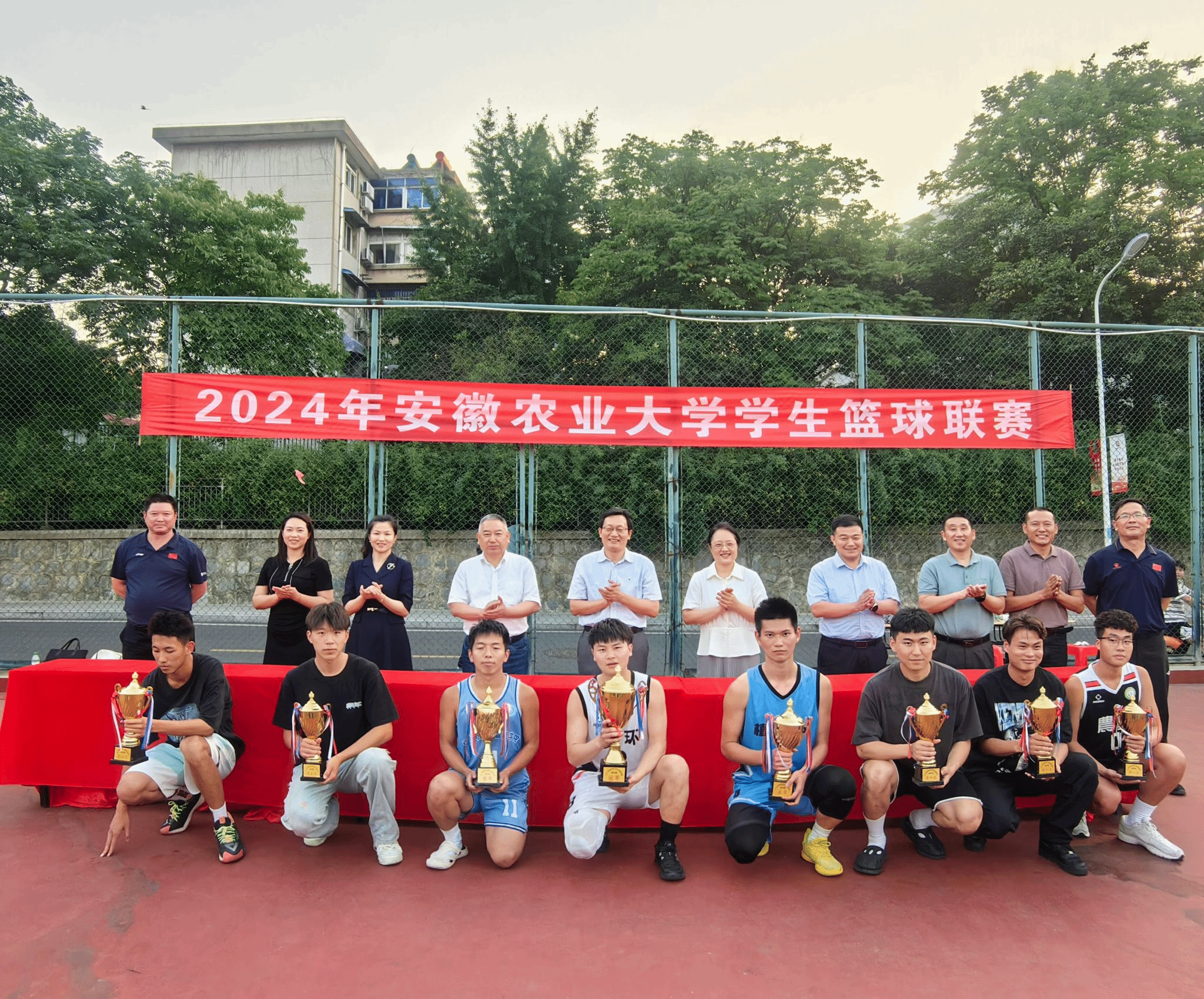 本网讯 6月12日下午,2024年安徽农业大学学生篮球比赛圆满落幕。校党委书记张庆亮,校党委常委、副校长李红,校党委常委、纪委书记、监察专员陈文兵出席闭幕式。闭幕式由体育部负责同志主持。