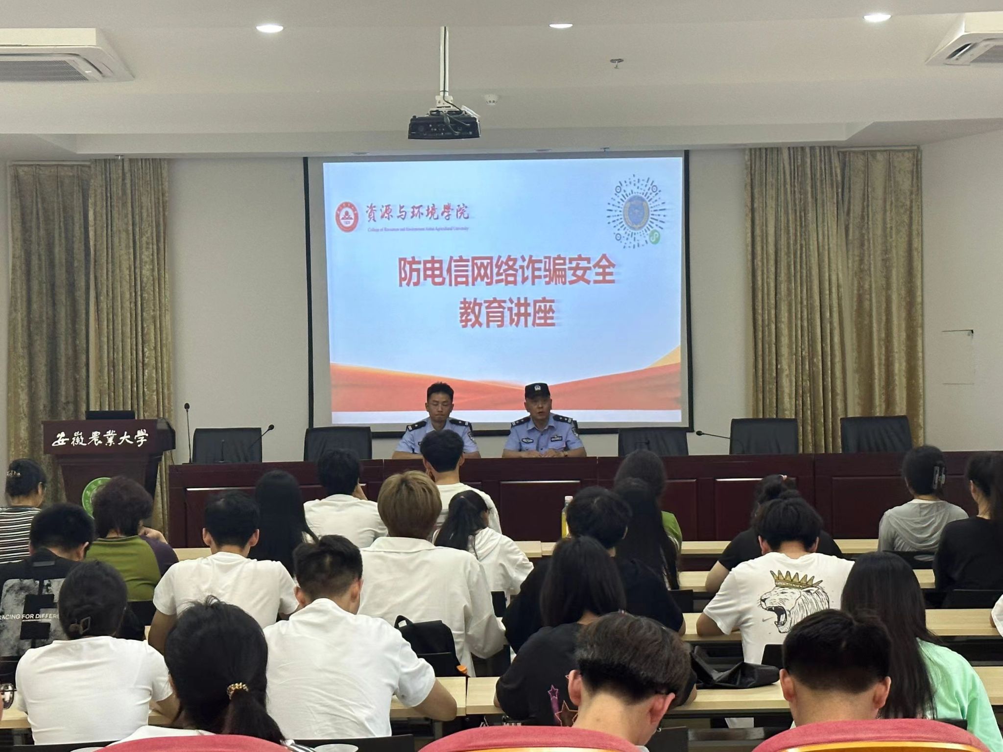 本网讯6月12日下午,资源与环境学院在中西部综合楼南楼久易报告厅开展大学生防范电信网络诈骗专题讲座,由琥珀街道派出所孙建民警官主讲,学院教师、研究生及本科生代表参加活动。