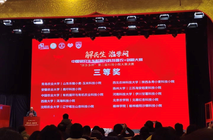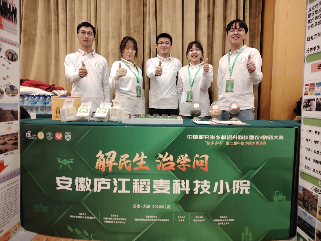 本网讯 1月6-7日,中国研究生乡村振兴科技强农+创新大赛“拼多多杯”第二届科技小院大赛全国总决赛在云南大理举行。通过初赛选拔,最终来自全国22所院校的46支队伍近200名师生参加总决赛,经过激烈角逐,我校资源与环境学院徐刚、陈晓辉指导的安徽庐江稻麦科技小院总排名第20,荣获全国三等奖,安徽农业大学获评优秀组织单位。