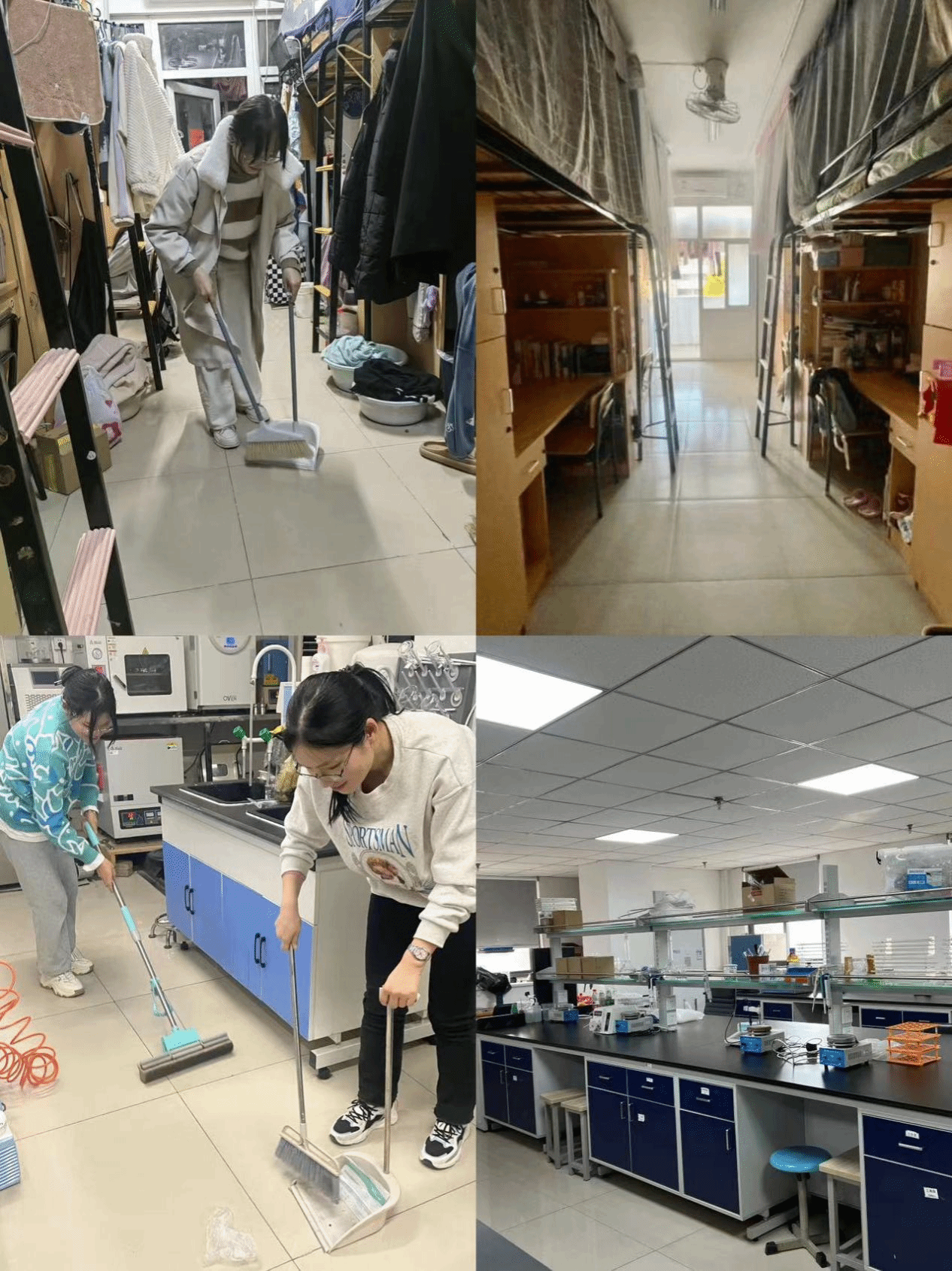 学院以党、团支部、班级为单位,组织学生骨干开展环境卫生大扫除,净化生活、实验、工作等场所和公共空间。学生党员带头参与志愿服务活动,清除卫生死角,加强公共物品及公共区域的清洁消杀,切实维护学院内部及周边环境卫生。