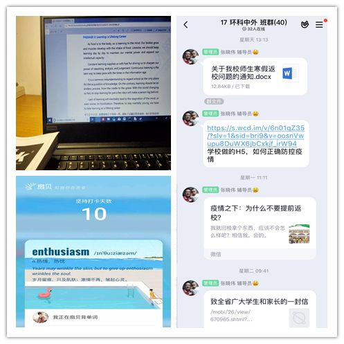 青春战疫我先行。学院号召全体团员青年结合实际、积极主动投入到战“疫”突击队中去。各团支部热烈响应,组织同学们采取录制加油视频、手绘、手写接力、H5科普等多种形式,线上传播科学防疫知识、讲述身边防疫故事、记录防疫期间心得体会,传播青春正能量。与此同时,同学们自发开展线上课程学习、运动健身打卡等活动,充实假期生活,做到停课不停学。
