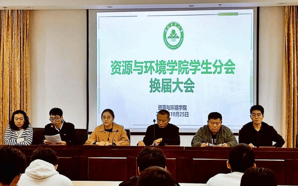 本网讯 10月25日中午,资源与环境学院在久易学术报告厅召开学生分会换届大会,学院党委副书记、纪委书记、副院长姚洪章出席会议,学院办公室负责老师、全体专职辅导员、第十七届学生分会常委会成员、第十八届学生分会全体成员参加大会。