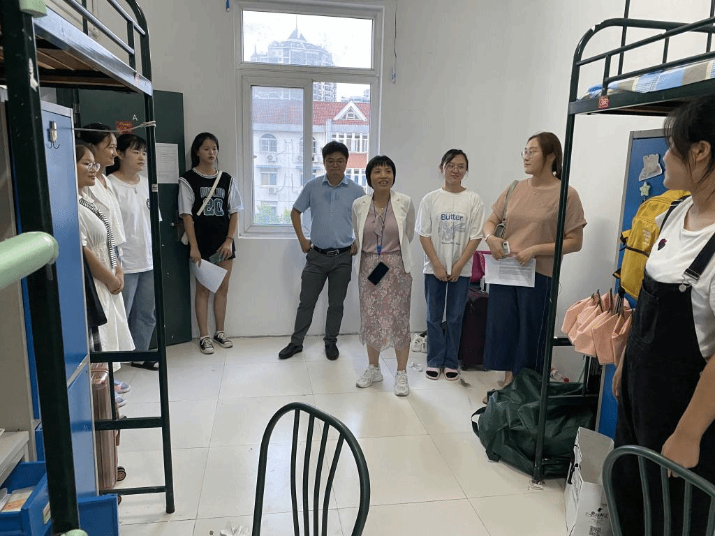 “你们对学校生活还习惯吗?”“报到是否顺利?”学院党政领导每到一间宿舍都详细询问了解新生们的入学体验和感受,并向同学们介绍了学校发展、学院学科建设以及学生就业前景等有关情况,希望同学们在四年时间里认真学好专业知识,抓住大好的发展机遇,做好自己的人生规划,提升自己的个人价值。此外,王琼还提醒同学们要注意饮食、交通及财产安全,注意防范各类金融诈骗;注意身体,无论学习还是生活,身体都是一切的根本;提醒同学们要适当加强锻炼,迎接即将到来的军训。