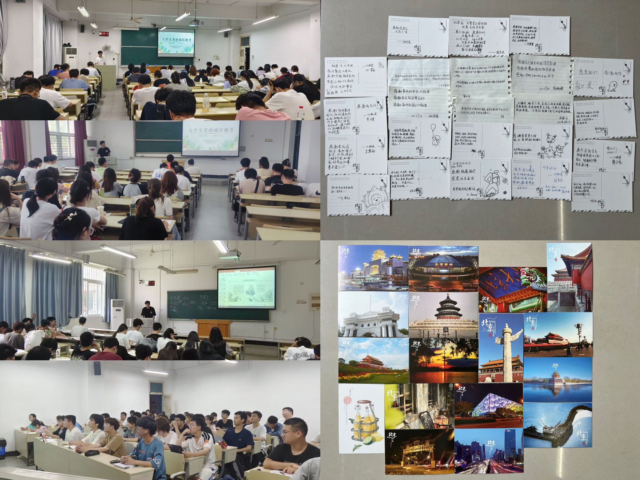 班级践行,共绘学生自我教育同心圆。班级是大学生的基本组织形式,为充分发挥学生主体作用,加强学生参与意识,培养学生创新精神,各专业班级在辅导员老师指导下扎实推进“1+1+X”活动深入开展,即“1个集体活动、1个自选活动、X个拓展活动”,包括“大学生资助诚信教育”主题班会、签订资助诚信承诺书、诚信宣誓、绘画(话)感恩等活动。学生们用饱满的情、感恩的心、手中的笔,真实表达心灵感动、感恩帮助、励志成才,营造了明礼守信、文明和谐的良好氛围,教育引导学生争做一个讲诚信、懂感恩、当自强的新时代青年。